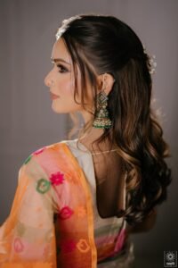 • 🎉 পার্টি বা রেড কার্পেট: স্টেটমেন্ট পিস – বড় সাইজের কানের দুল, হেডগিয়ার বা লেয়ার্ড নেকলেস।